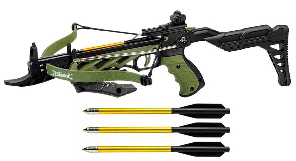 - Arbalète pistolet 80 livres crosse réglable + 3 flèches.
