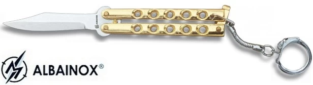 - Balisong porte-clé 13,5cm – Couteau papillon doré.
