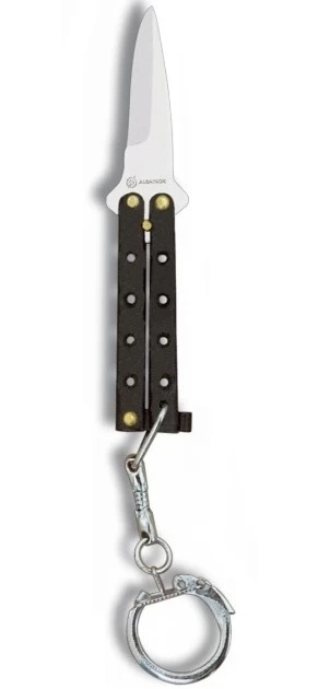 - Que ce soit pour se faire plaisir ou pour faire plaisir à une personne de son entourage, ce balisong porte-clé d’une longueur de 8,8 cm est un produit à la fois original et de grande qualité. Que ce soit tout simplement pour arborer son amour pour les armes blanches tout en se servant de sa fonctionnalité de porte-clé ou tout simplement pour l’utiliser pour la pratique des tricks, ce produit ne manquera pas de séduire tous les utilisateurs. Proposé à un excellent rapport qualité prix, ce balisong porte-clé permet ainsi de bénéficier d’une excellente prise en main, d’une position confortable, et d’un manche antidérapant conçu entièrement à base d’aluminium. Sa couleur de manche noir et sa lame grise lui confère un look très tendance pour un design typique d’arme de rue. On apprécie notamment l’originalité de ce porte-clé qui permet de bénéficier d’une lame tranchante en acier inoxydable de 3,8 cm avec une ouverture papillon.