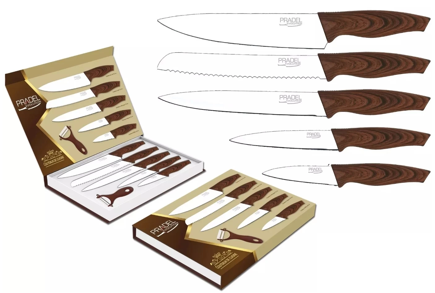- Coffret couteaux PRADEL couteau de cuisine table – Acier blanc.