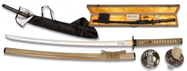 Vous trouverez un katana avec une lame de 69 cm en acier carbone et un manche antidérapant entouré de cordelettes en nylon, ainsi qu’une housse de rangement. En plus du katana, ce coffret vous propose un kit de nettoyage pour l’entretien de votre arme, d’un support si vous souhaitez l’exposer, et deux tsubas pour varier le style. C’est un coffret avec un katana de grande qualité qui comblera toutes les attentes, qu’elles soient esthétiques ou pratiques.