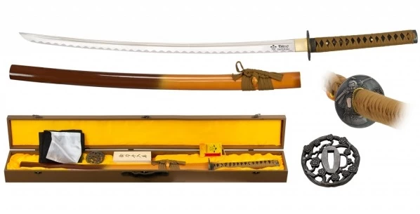 Le coffret bois est d’une qualité de finition poussée à l’extrême jusque dans le moindre détail, à l’image du savoir-faire japonais. La lame est faite en acier carbone de très haute qualité et trempée à l’huile pour une qualité de finition et un tranchant inégalable. Le manche est pensé pour l’utilisation de l’arme avec une prise antidérapante qui garantira le maintien de l’arme dans vos mains quels que soient les mouvements que vous réalisez avec. La prise en main est également étudiée pour s’adapter à tous les types de mains pour que le katana reste stable et bien tenu. Une garantie de sécurité non-négligeable quand l’on prend conscience du potentiel de tranchant d’une lame telle que celle-ci. Faîtes bien attention de ne pas la laisser dans toutes les mains et gardez la dans son coffret ou exposée en hauteur hors de la portée des enfants et des animaux de compagnie qui pourraient occasionner de graves blessures.