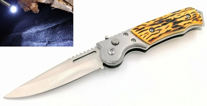 du produit « Couteau automatique 19,5cm à cran d’arrêt – Lampe LED »