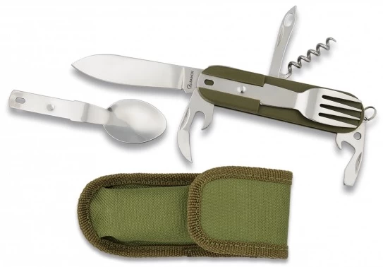 Chaque modĂšle comprend plusieurs utilitaires pratiques : une cuillĂšre, une fourchette, un tire bouchon ainsi quâun tournevis et des dĂ©capsuleurs – Pour vos repas en plein air ou sur la route, le couteau militaire dâALBAINOX saura trouver sa place dans votre sac Ă dos ou votre voiture.