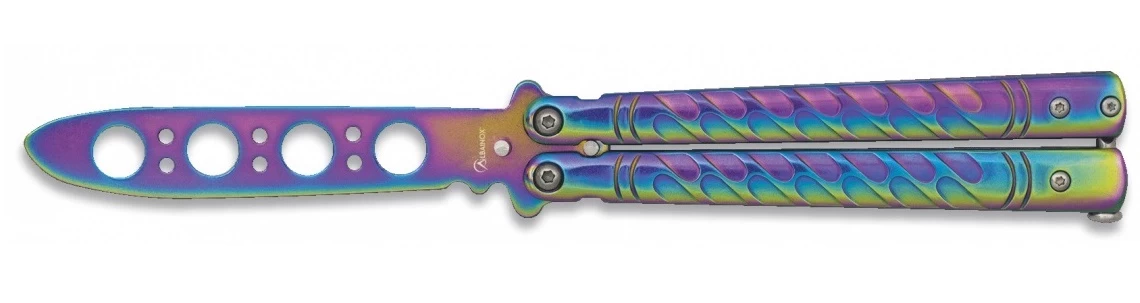 - Couteau papillon balisong 21,5cm multicolore entrainement.