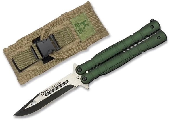 La lame du couteau papillon est en acier inoxydable et le manche en aluminium. La lame possède une couche de titane sur toute sa longueur. Le titane est un alliage qui a la particularité d’être résistant à l’abrasion et aux chocs thermiques. Ce modèle de couteau papillon balisong fait partie des armes militaires idéales pour effectuer des tricks. La lame est tranchante et prête à vous accompagner dans votre quotidien ou vos activités sportives ou encore votre collection ! Commandez dès maintenant votre couteau papillon balisong 22,8cm titane K25 via notre site.
