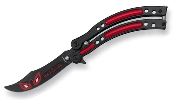 Le balisong red eagle dispose d’une lame tranchante en acier inoxydable de 9 cm