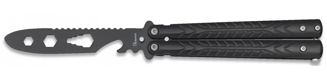 du produit « Couteau papillon lame décapsuleur tournevis entrainement »