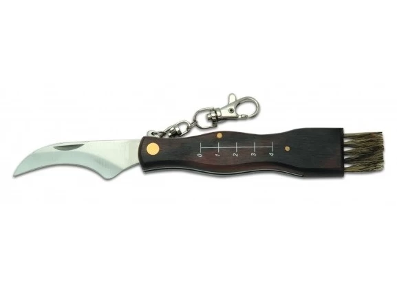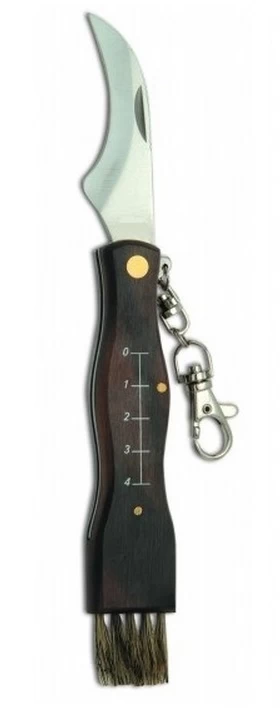 - Avis de Couteau Azur : Ce très joli couteau ravira les amoureux de la nature. De par sa forme serpette, il est idĂ©al pour la cueillette des champignons, mais aussi de tout autres vĂ©gĂ©taux tendres. FabriquĂ©e en acier inox, gage d’une longue durĂ©e de vie, sa lame tranchante permettra une coupe nette. La forme de son manche en bois (muni d’une rĂ©glette) est ergonomique, garantissant une bonne prise en main, et est Ă©galement antidĂ©rapant. Il est Ă©quipĂ© d’un porte-clĂ©s ainsi que d’une petite brosse très pratique.