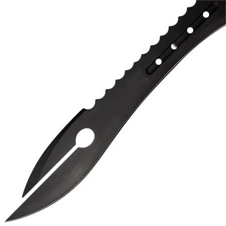 Cela lui donne une apparence d’épée fantastique, prête à combattre tous les diables et démons. La longueur totale de l’épée est de 63,5 cm pour une lame de 41 cm. Cette lame propose une forme originale qui explique son nom de démon : parfaitement tranchante et lisse d’un côté, son autre côté présente des crans en encoche. Elle est ajourée par endroits sans que cela nuise à sa solidité car elle est forgée dans de l’acier inoxydable ultra résistant. De plus, la lame est full tang ce qui renforce encore sa solidité. Le manche lui-même est en acier inoxydable. Il est entouré par une cordelette de nylon rouge bordeaux antidérapante qui assure une parfaite prise en main et une position confortable. Vous manipulez l’épée Démon avec précision et sans vous fatiguer inutilement.