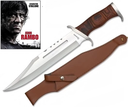 - détaillée : Pour tous les fans du célèbre « Rambo » joué par Sylvester Stallone, ce grand poignard de 41,2 cm rappellera de nombreux souvenirs. En effet, ce produit est une véritable reproduction du poignard utilisé dans le film Rambo. Même sans être fan de cette saga, ce poignard de grande qualité de marque Survivors Bowie peut venir compléter une collection déjà existante. Le poignard aux allures de couteau de chasse mesure 41,2 cm pour un poids total de 605 grammes. Il comprend une lame tranchante en acier inoxydable de 28 cm et une épaisseur de lame de 4 mm ce qui le rend véritablement redoutable. Un étui en cuir véritable est également fourni lors de l’achat de manière à le transporter en toute sécurité, mais également sans l’endommager. Son manche antidérapant en bois lui apporte un esthétisme particulier, mais également une qualité supplémentaire. À noter également que le carde-main ainsi que l’embout sont en laiton. De très grande qualité et extrêmement résistant, il pourra ainsi être utilisé dans diverses situations. Faire confiance à ce produit, c’est également faire confiance à la marque Survivors Bowie, et profiter ainsi d’un produit haut de gamme à un tarif abordable.