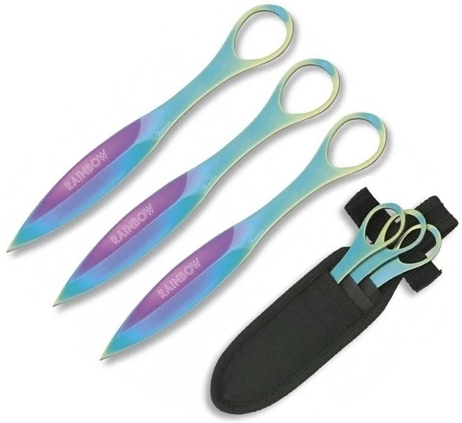 - Lot 3 couteaux de lancer 16,5cm full tang RAINBOW.