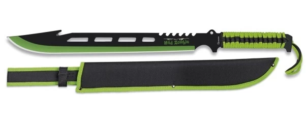 Cette machette unique est dotée du design décoratif Zombie! . Son allure noire et verte révèle le sentiment d’aventure qu’elle procure à son utilisateur. Son manche incurvé offre un look distinctif qui complète le design Zombie, tandis que l’étui en nylon assure la protection des éléments internes.
