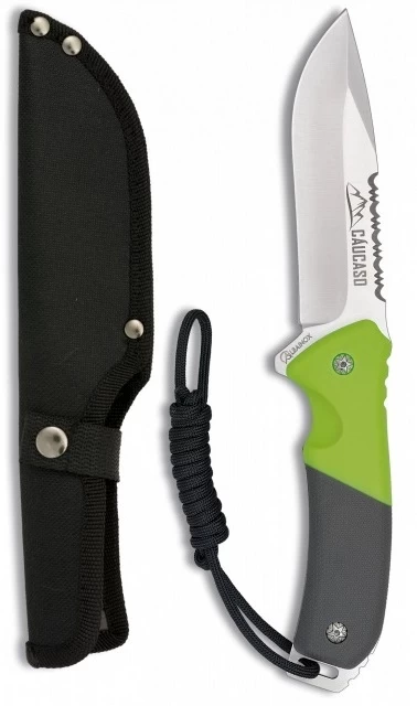- Avis de Couteau Azur : Ce couteau est un poignard full tang caucaso de 26 cm de long, aux couleurs gris vert, qui surprendra tant par sa légèreté que par sa facilité d’utilisation. Sa lame tranchante de 12 cm de long en acier inoxydable avec sa partie dentelée sur le dos viendra à bout de tout ce que l’utilisateur désire couper. Muni d’un manche anti déparant recouvert de caoutchouc et d’abs, cela fait de ce couteau un poignard résistant de grande qualité avec sa cordelette en para-corde de survie assurant une très bonne prise en main, et facilitant ainsi son utilisation peu importe les gestes qui seront faits. Ce poignard s’avère indispensable autant pour la survie que pour les activités de camping par exemple. Albainox signe ici un poignard full tang fait d’une seule pièce en acier inoxydable, un produit d’excellente qualité voire même haut de gamme, fourni avec son étui en nylon avec passant à la ceinture, pour permettre un transport facile et agréable de cette pièce unique en son genre. Ce poignard prendra simplement sa place aux côtés de son utilisateur, comme une évidence, un indispensable au quotidien. Son excellent rapport qualité prix s’ajoute aux nombreuses qualités de ce poignard full tang caucaso. Il sera un allié au quotidien dans toutes les situations ou sera une excellente arme pour venir compléter une collection d’armes blanches existante.
