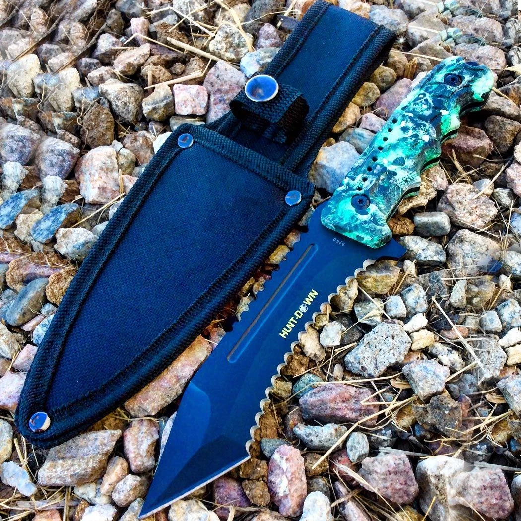 Le poignard couteau zombie de 24,5 cm Full Tang en acier proposé par Couteau Azur est un couteau de qualité supérieure, conçu pour les utilisateurs qui recherchent un outil robuste et efficace pour leurs activités en extérieur. Le couteau est fabriqué à partir d’acier de haute qualité, ce qui garantit une grande résistance et une durabilité accrue. Le Full Tang, c’est-à-dire la lame s’étend à travers toute la longueur de la poignée, permet une solidité accrue pour des utilisations plus rudes. Le design du couteau est clairement inspiré du thème zombie, avec une lame en forme de griffe et une finition noire mate. La lame est tranchante et dispose d’un pointu prononcé pour une meilleure efficacité de coupe. La longueur de la lame est de 12,5 cm, offrant une taille pratique pour une utilisation en extérieur.